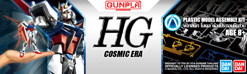 Bandai® High Grade Cosmic Era (HG-CE) 1/144 กันดั้ม กันพลา โมเดล ไฮเกรด กันดั้ม กันพลา โมเดล จะผลิตในอัตราส่วน 1/144 ซึ่งมีขนาดเล็ก มีการแยกสีและจุดขยับต่างๆมาดีในระดับหนึ่ง อาจจะมีจุดที่ต้องทำสีหรือติดสติกเกอร์เพื่อให้สีตรงกับของจริง มีความรายละเอียดสวยงามใกล้เคียงกับใน Anime ราคาไม่แพงมาก