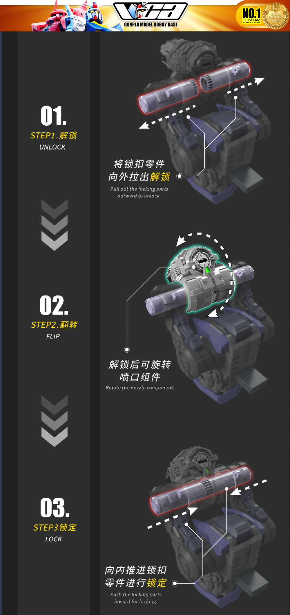 ◇ Cutting-Edge Engineering: The head features a magnetically controlled LED light-up system, while the backpack integrates a complete transformation-ready frame with precision locks and geared joints for flawless stability. Every detail is designed to enhance both your building experience and your final display.