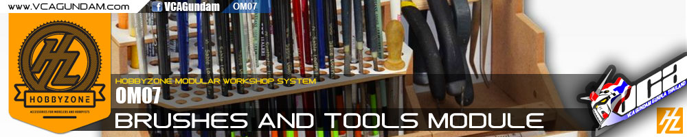 HOBBYZONE OM07 BRUSHES & TOOLS MODULE The Brushes and Tools Module has a lot of holes in different sizes for tools. It also has a built-in roller for hanging pincers, pliers, clamps, etc.. Note! The Module can be used only in the top row of the Modular Workshop System. This Module is designed to connect with other products of Modular Workshop System. DIMENSION : 30cm x 15cm x 15cm MAIN FEATURE To connect modules use magnets that are included. Thanks to this solution, you can always change the configuration of the workshop according to your needs. The set consists perfectly fitted parts and assembly instructions. For the assembly wood glue will be needed. The Module does not include accessories, pictures just shows a sample of equipment. PRODUCT DESCRIPTION